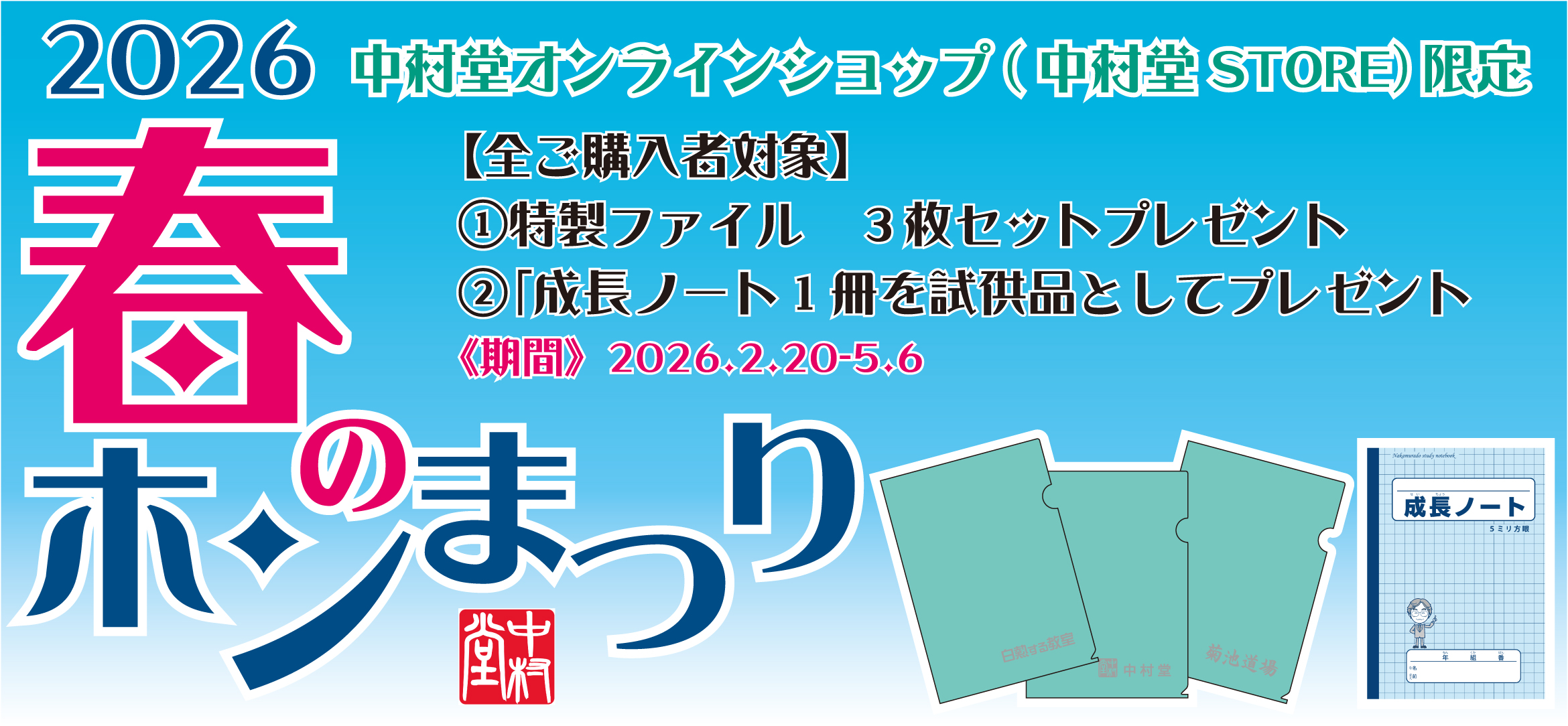 中村堂オンラインショップ(中村堂STORE)では、「中村堂『春のホンまつり 2026』」を下記の通り開催いたします。